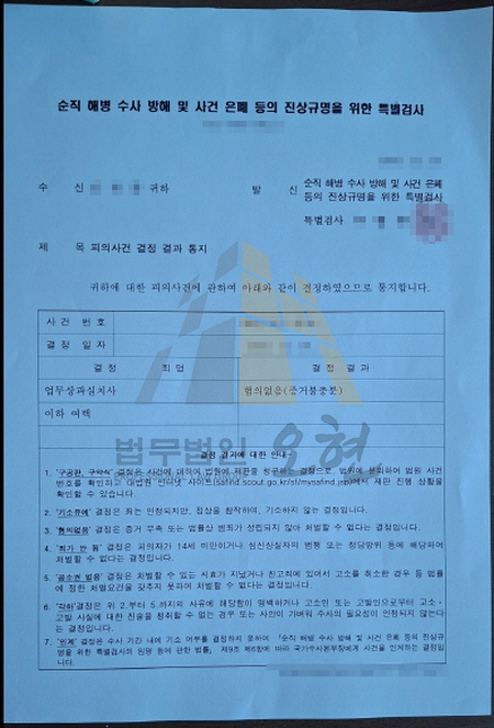 특검 조사 단계에서 의뢰인의 혐의 없음이 명확히 확인되어 수사가 종결되었습니다.