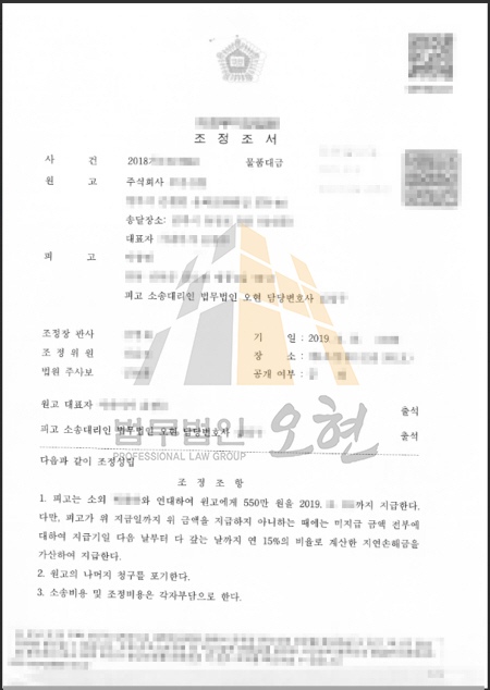 #물품대금소송 #조정성공사례 #부분지급조정 #연대채무 #지연손해금감소