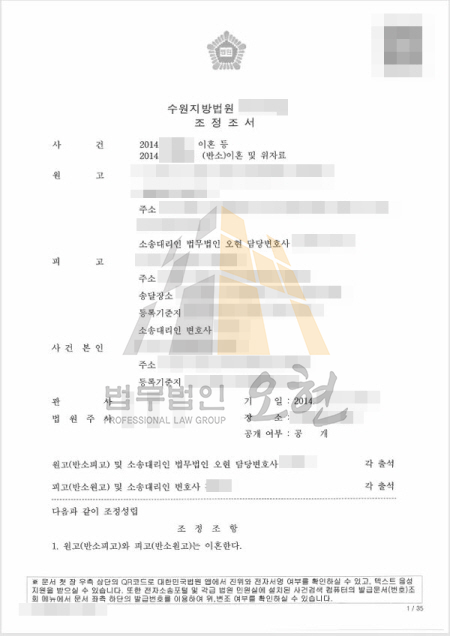 결국 본 법인을 통해 이혼소송 및 조정절차를 진행하게 되었습니다.