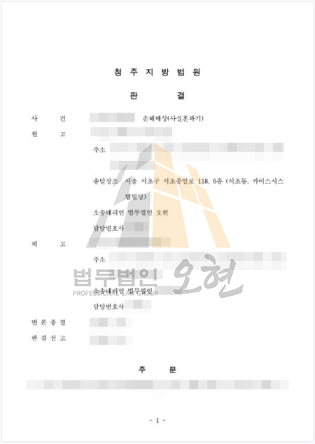 더불어 향후 의뢰인 배우자에 대한 접근, 연락, 부정행위 사실 유포 등을 일체 금지하는 확약을 받아내었고,